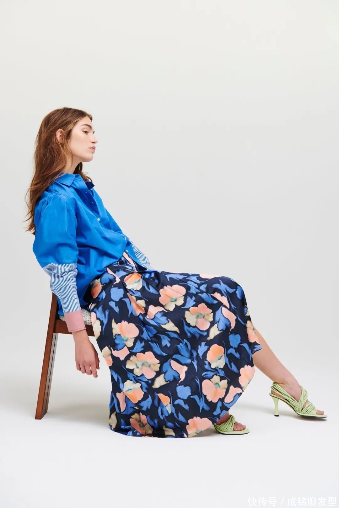 衬衫的种类大要分为直线条的编订与弧线条的编订,像上图中这种直线条策画的衬衫搭配纹理烫长鬈发既显气质又不失女东谈主味,下装搭配同颜色的印花长裙+尖头高跟鞋,将女性魔力短暂拉满。